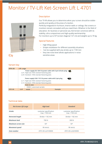 Monitor / TV-Lift Ket-Screen Lift L 4701