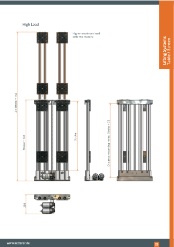 High Load Higher maximum load with two motors! www.ketterer.de 243 208 Stroke + 142 Distance mounting holes: Stroke + 72 Stroke 2 x Stroke + 142 Lifting Systems Table / Screen