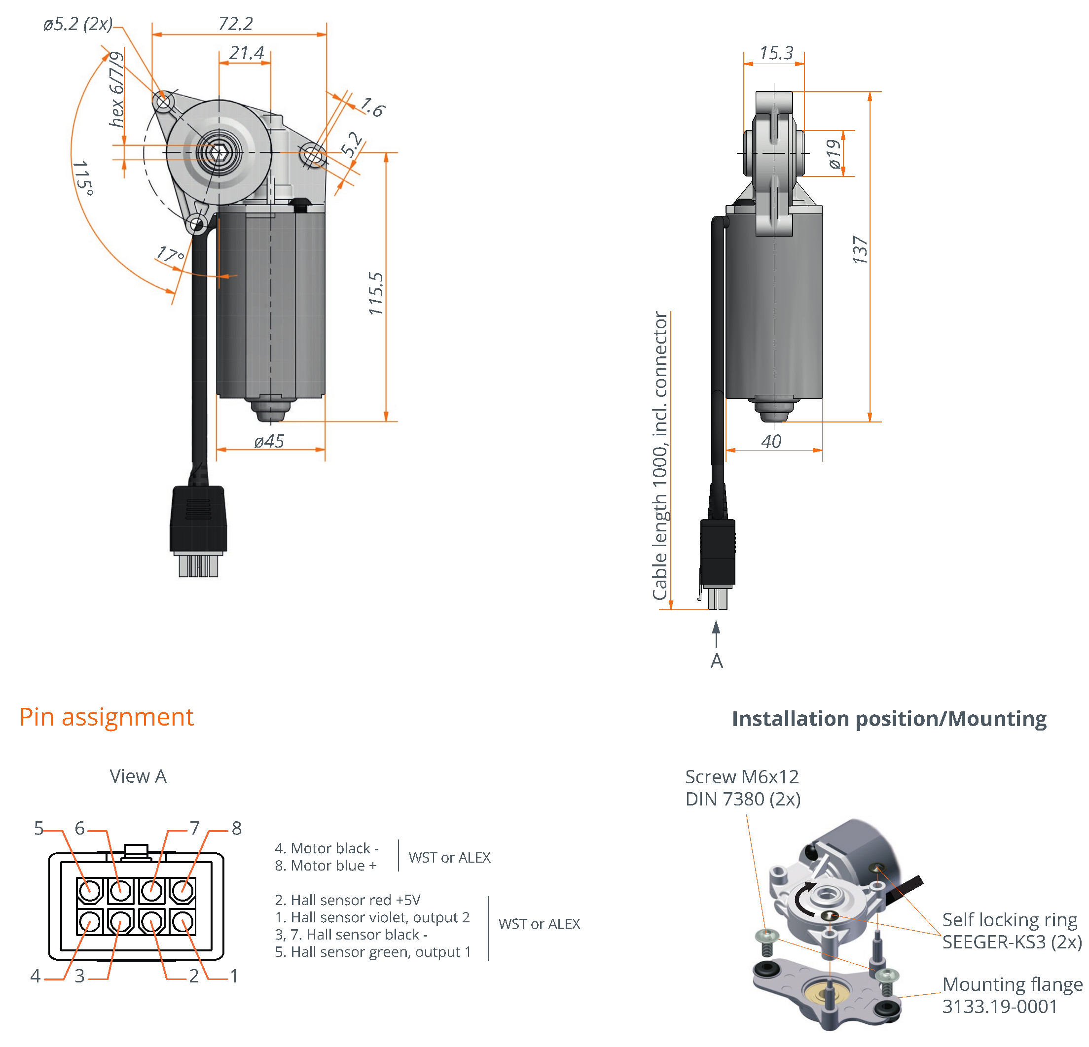 - To ensure secure operation the motor must be operated in the predefi ned installation position (see installation position/mounting).
